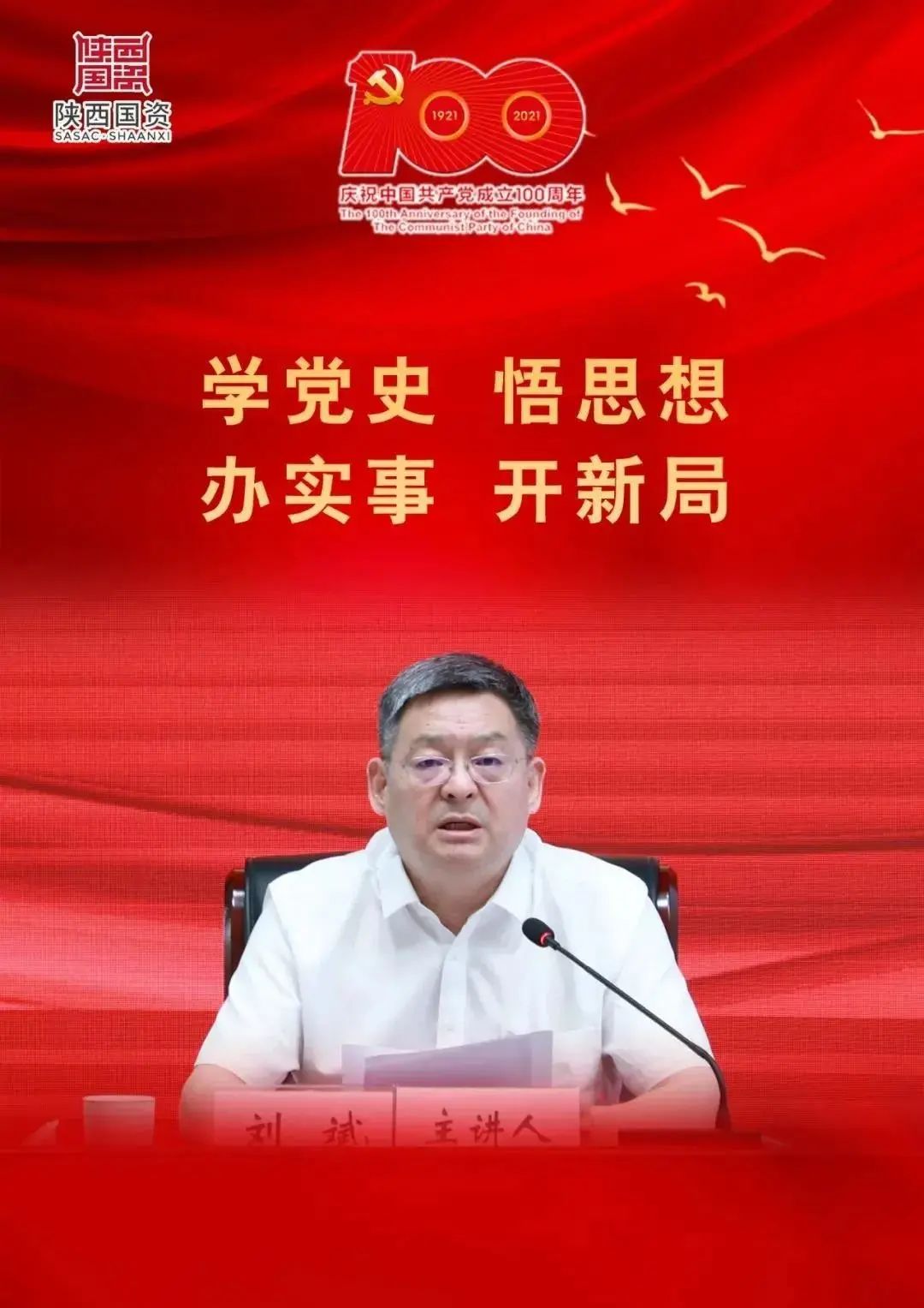 6月23日,省國資委黨委書記、黨史學習教育領導小組組長劉斌以《扛起國有企業(yè)時代責任 致敬中國共產(chǎn)黨成立100周年》為題,為系統(tǒng)黨員干部上“黨委書記講百年黨史”系列黨課第十講。省國資委黨委副書記、主任,黨史學習教育領導小組副組長王海鵬主持會議。